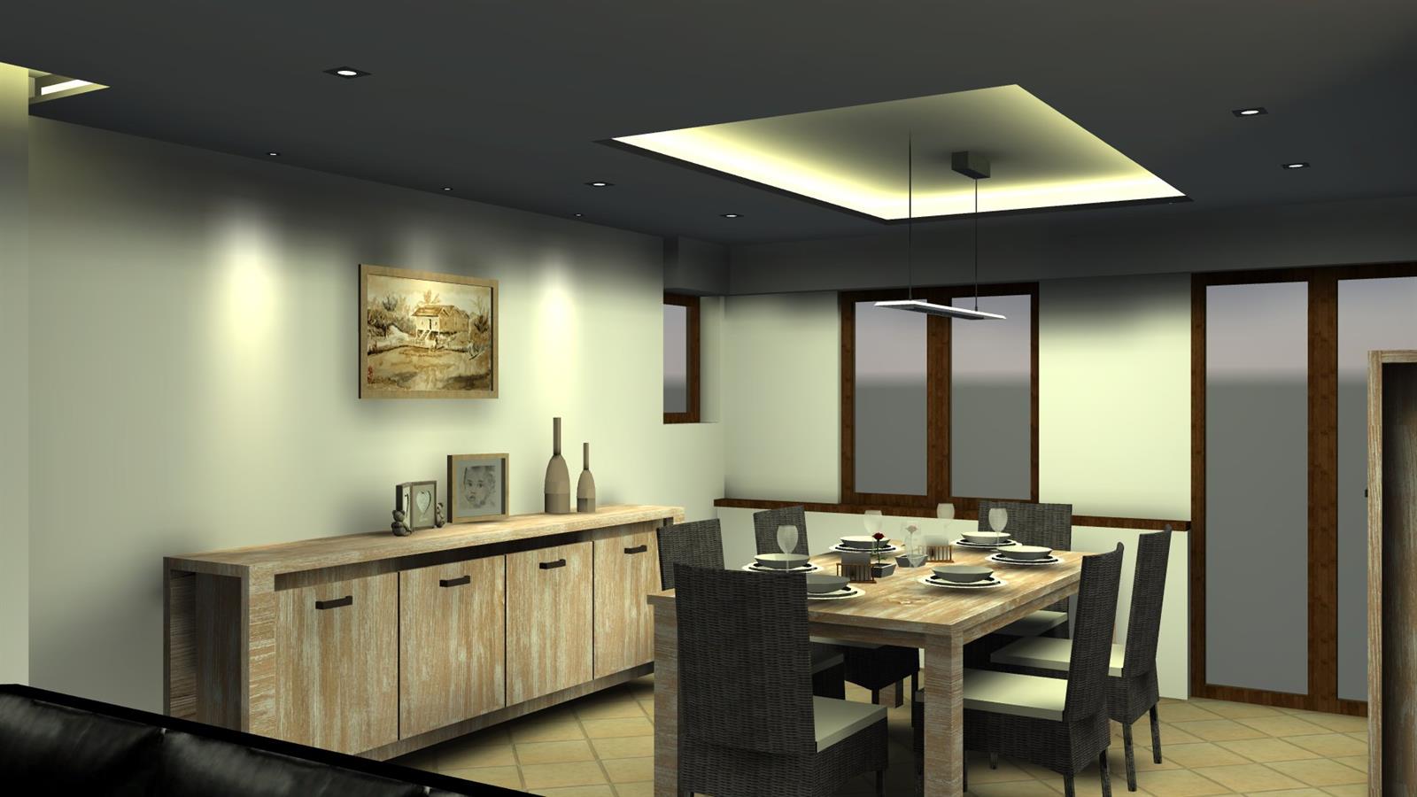 Nous vous envoyons 5 visuels 3D de la mise en situation avec implantation d'éclairage et mobilier pour 1 pièce au choix.
